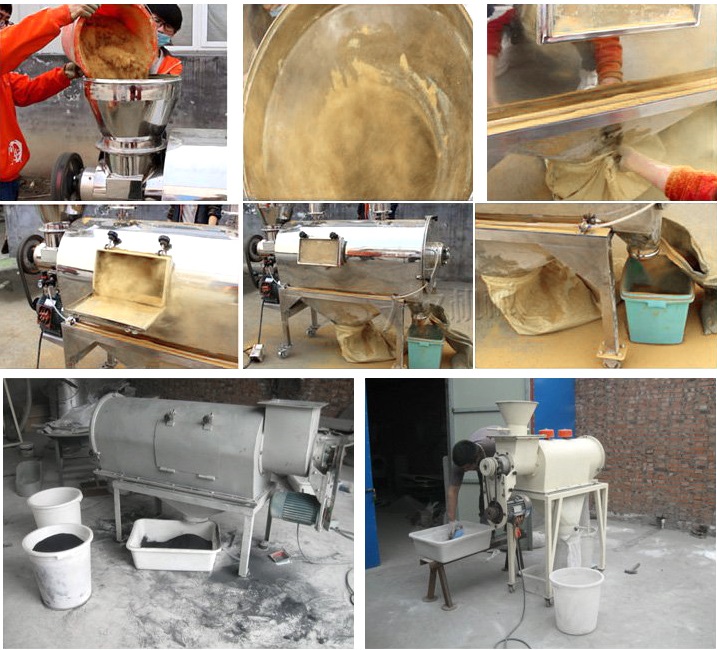已成功應(yīng)用于120-180目輕鈣、300目重鈣、400目活性鈣、300目山楂粉、320-500目鋅粉、500目氧化鐵黑等物料,良好篩分取得了效果。測得篩網(wǎng)面積每平方米每小時(shí)產(chǎn)量約1噸,經(jīng)測篩分精度在95%以上,空氣含塵量小于10mg/m3。
