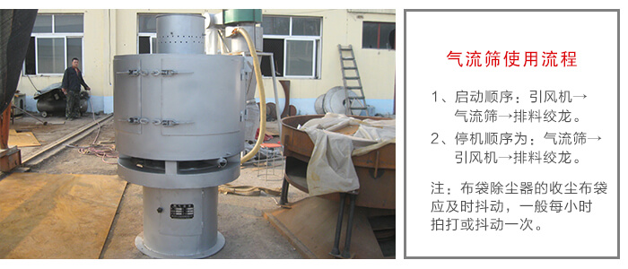 氣流篩組操作啟動(dòng)順序:引風(fēng)機(jī)→氣流篩→排料絞龍。