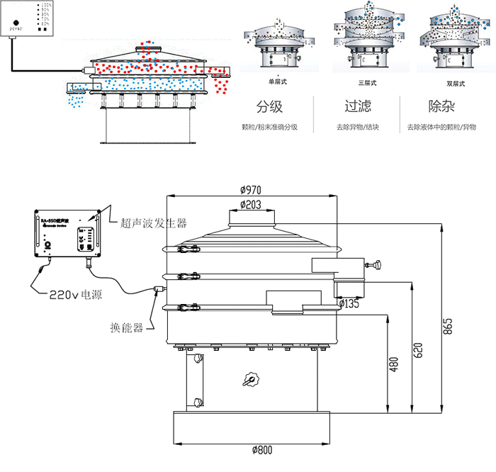 超聲波振動篩工作原理: